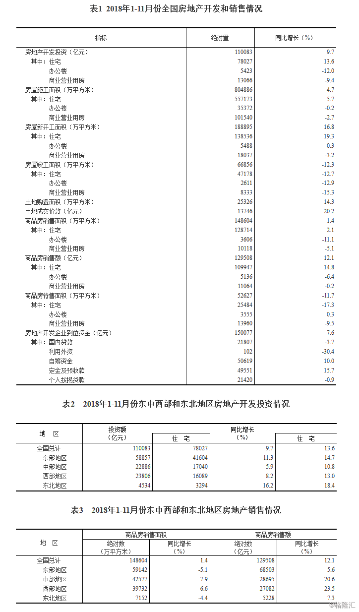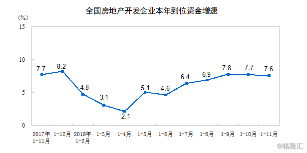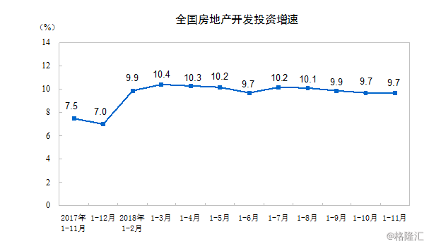 格隆汇获悉,今日,国家统计局公布2018年1-11月份全国房地产开发投资和销售情况。