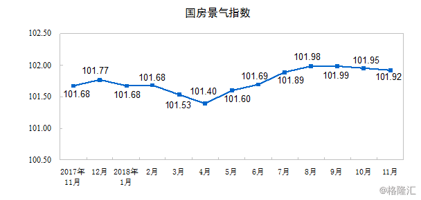 11月份,房地产开发景气指数(简称“国房景气指数”)为101.92,比10月份回落0.03点。